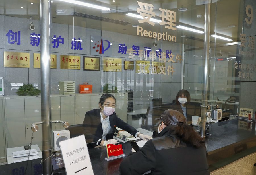 Staff of China National Intellectual Property Administration provides service to residents in Beijing, Feb. 3, 2020. (Provided by CNIPA).