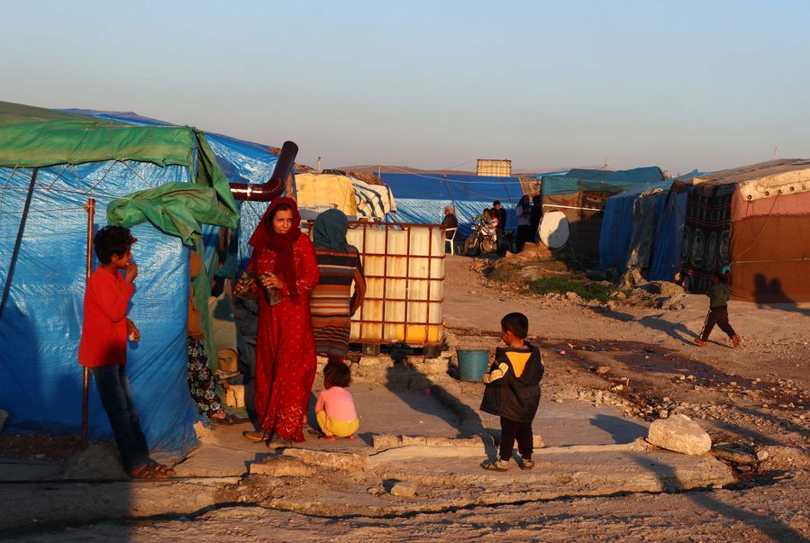 Refugees from Syria are seen at a temporary settlement in Hatay, Turkey, on Feb. 26, 2020. (Xinhua/Wang Feng)