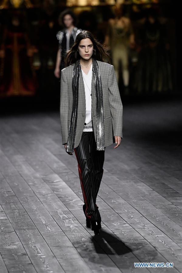 A model presents a creation by Louis Vuitton during the Women's Fall/Winter 2020-2021 Ready-to-Wear collection fashion show in Paris, France, on March 3, 2020. (Photo provided by Piero Biasion/Xinhua)