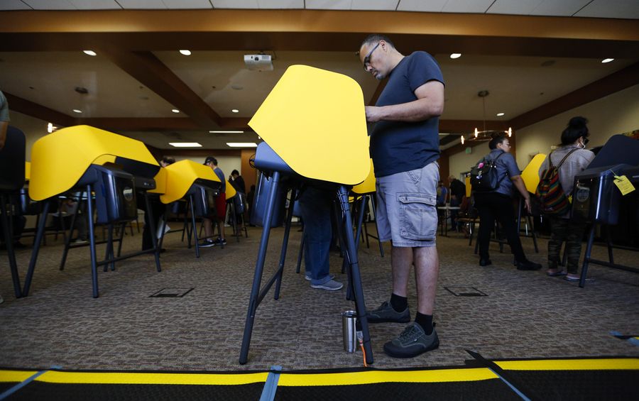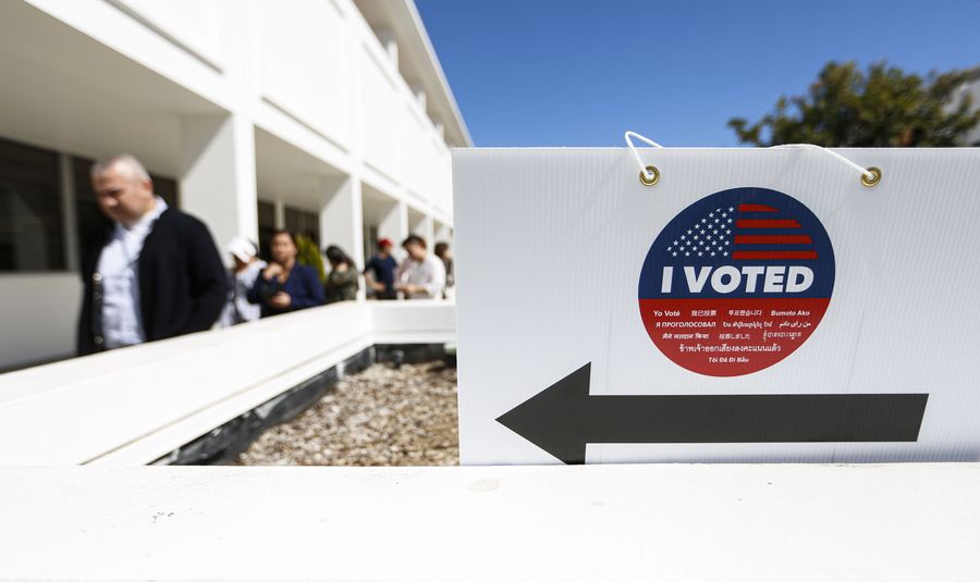 Voters cast ballots at a polling station in Los Angeles, California, the United States, March 3, 2020. (Xinhua/Li Ying)