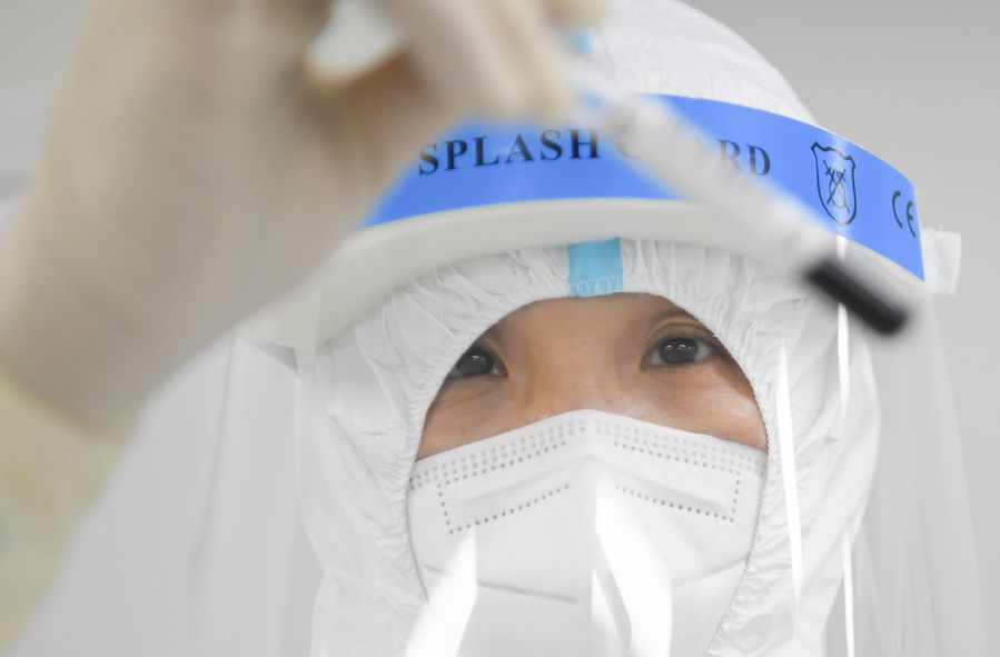 A researcher works at a laboratory of the disease prevention and control center in Nanyang, central China's Henan Province, Feb. 4, 2020. (Photo by Hao Yuan/Xinhua)
