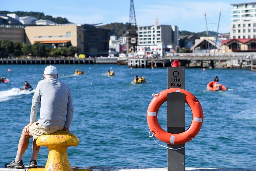 A spectator looks on during the Dragon Boat Festival in Wellington, New Zealand, March 7, 2020. (Xinhua/Guo Lei)■