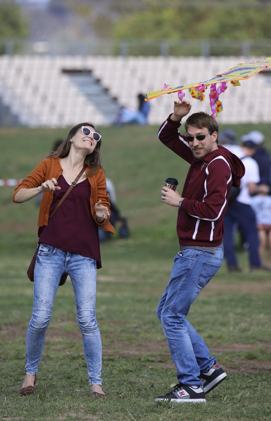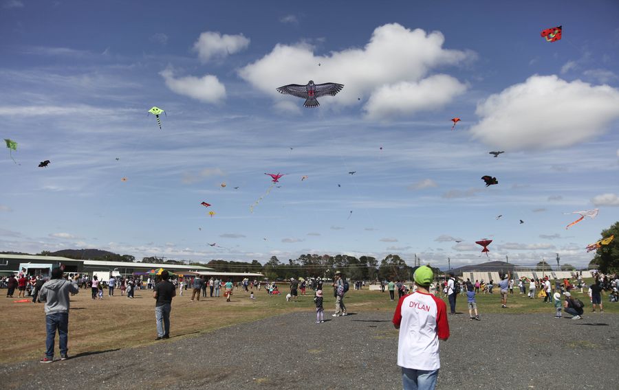 Photo taken on March 8, 2020 shows locals flying kites during a sunny day at the Exhibition Park in Canberra (EPIC), Canberra, Australia. (Photo by Liu Changchang/Xinhua)