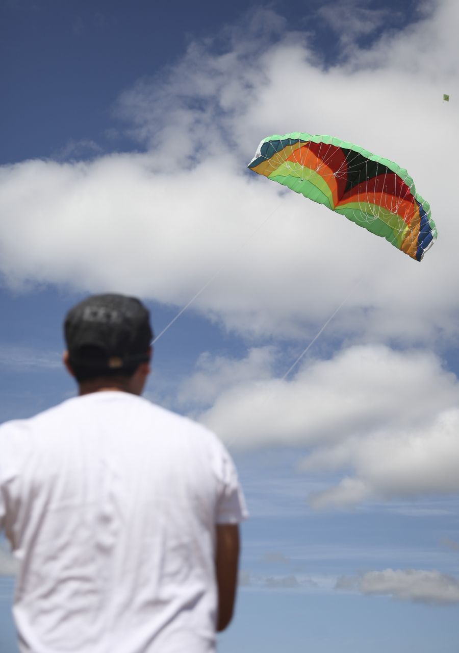 Photo taken on March 8, 2020 shows a person flying a kite during a sunny day at the Exhibition Park in Canberra (EPIC), Canberra, Australia. (Photo by Liu Changchang/Xinhua)