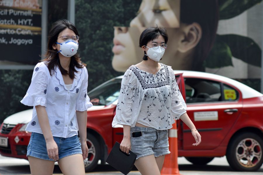People wearing masks walk on a street in Kuala Lumpur, Malaysia, March 9, 2020. (Xinhua/Chong Voon Chung)