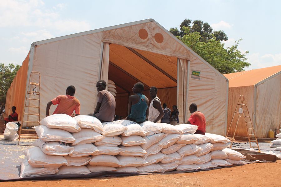 The photo shows a United Nations World Food Program (WFP) warehouse which is used to store locally produced grains in Yambio, South Sudan, on March 5, 2020. (Xinhua/Gale Julius)