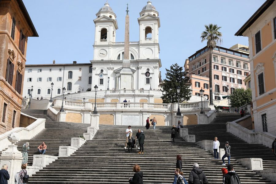 Photo taken on March 10, 2020 shows a view of the Spanish Steps in Rome, Italy, on the first day of the lockdown of the country.(Xinhua/Cheng Tingting)