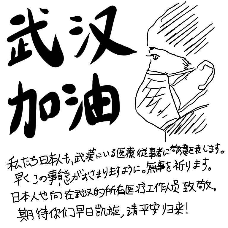 "The Japanese salute to all the medical workers in Wuhan and look forward to your early triumph and safe return!" she wrote in both Japanese and Chinese in the cartoon.