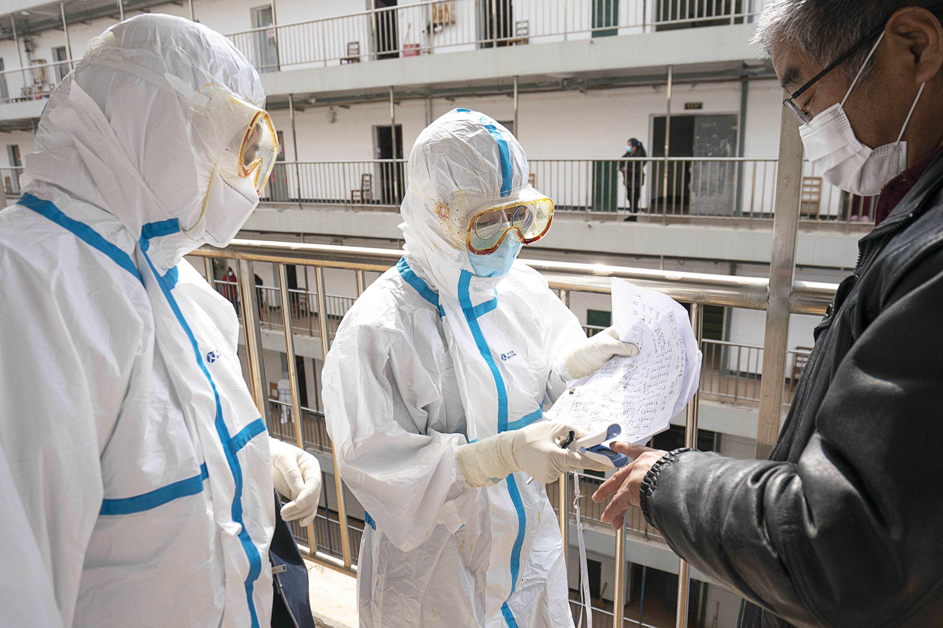 Some districts took over student dormitory buildings for use and renovated four-bed rooms to accommodate one patient each. The beds and cabinets are covered by protective packaging. Daily necessities, including water bottles, slippers, and toilet paper, are provided for each patient.