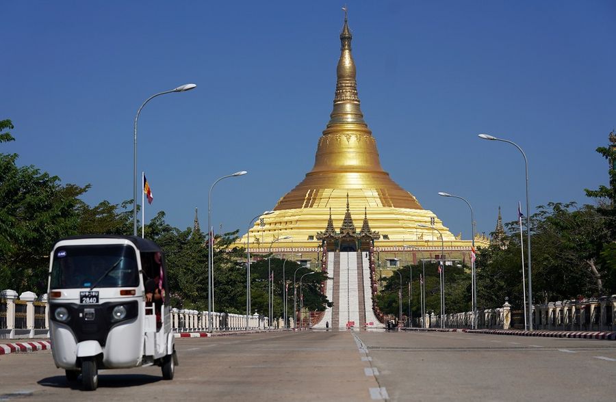 Photo taken on Jan. 14, 2020 shows the Uppatasanti Pagoda, a prominent landmark in Nay Pyi Taw, Myanmar. (Xinhua/Wang Shen)