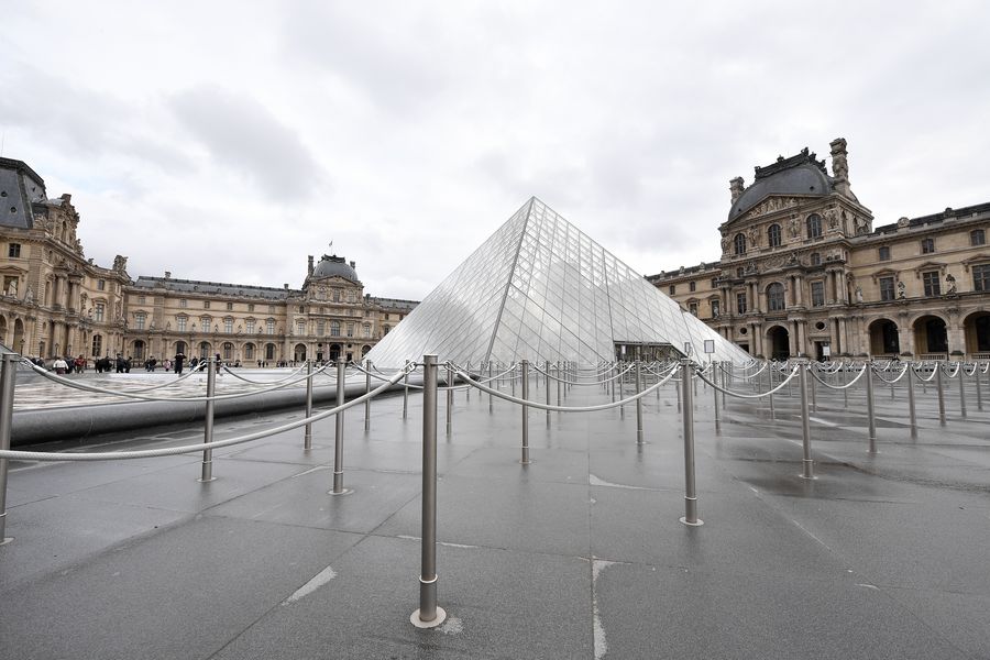 Photo taken on March 14, 2020 shows the closed Louvre Museum in Paris, France. (Photo by Jack Chan/Xinhua)
