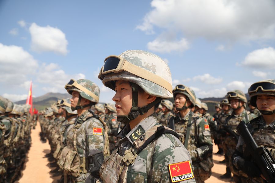 Soliders take part in the opening ceremony of a joint military exercise of Cambodia and China in Cambodia's southwestern Kampot province, on March 15, 2020. (Photo by Cui Songrou/Xinhua)