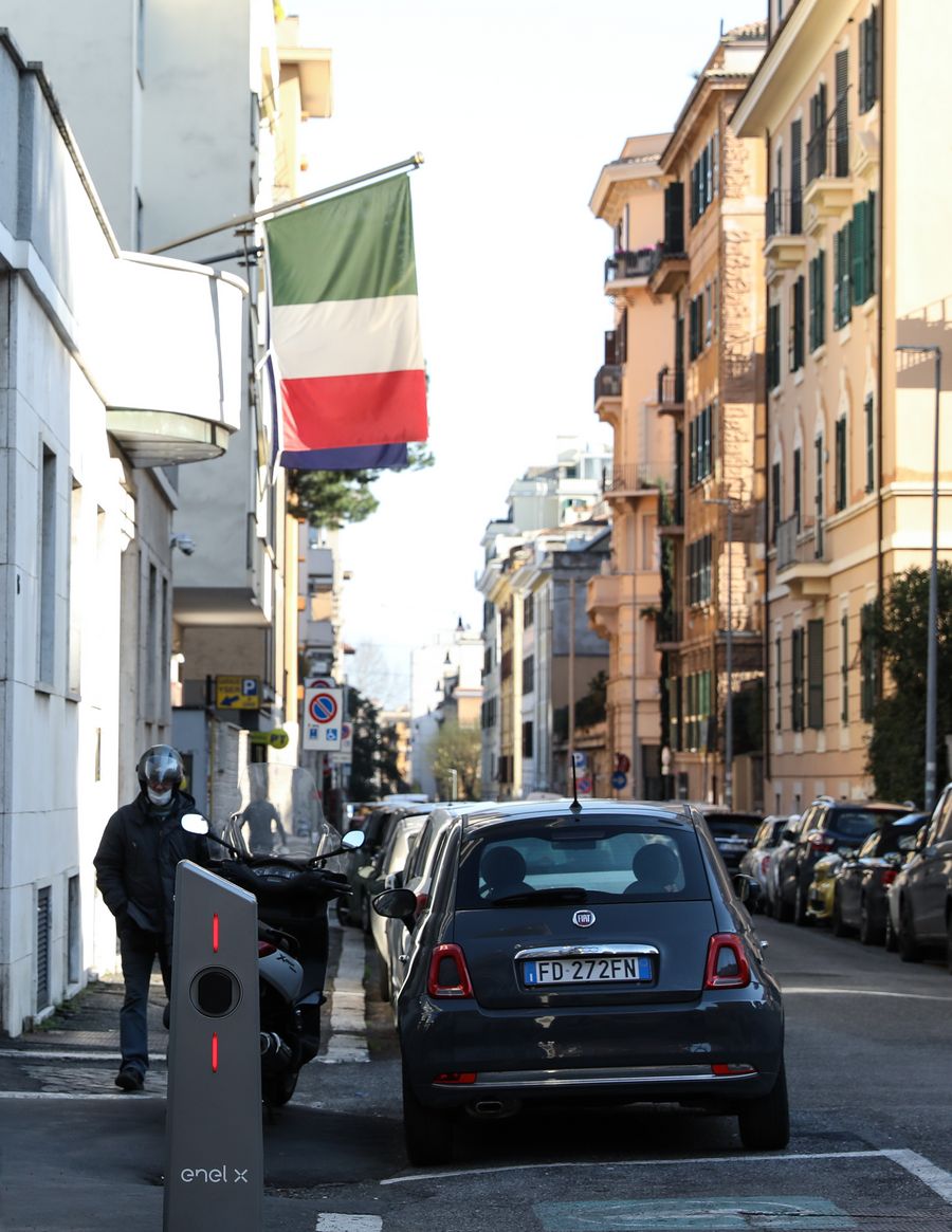 A man wearing a face mask walks towards his motorcycle in Rome, Italy, on March 15, 2020. (Xinhua/Cheng Tingting)