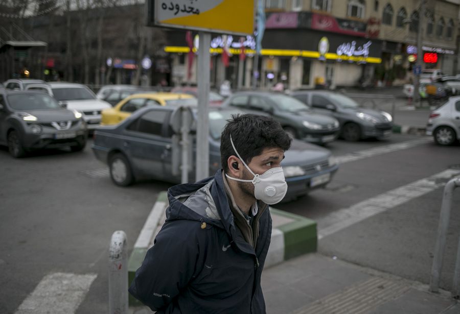 A man wearing mask walks on a street in Tehran, Iran, on March 7, 2020. (Photo by Ahmad Halabisaz/Xinhua)
