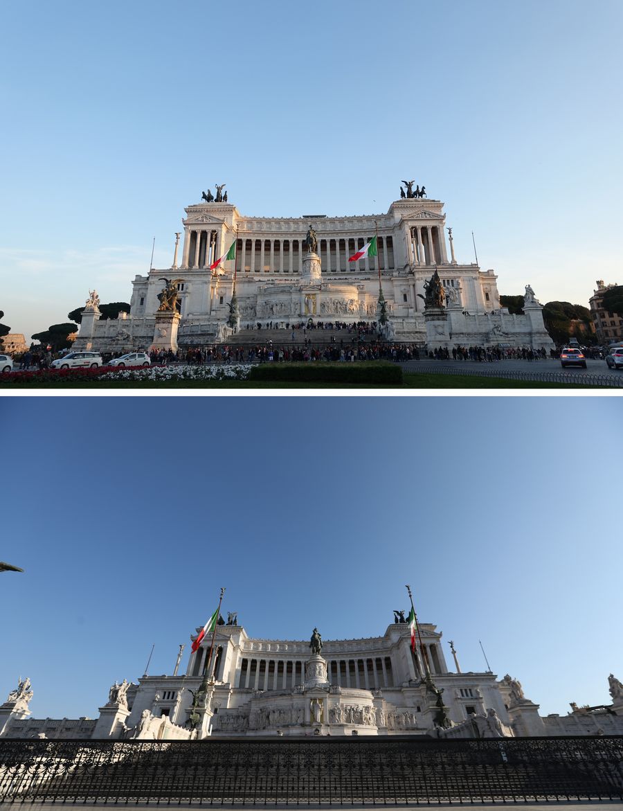 Combo photo shows Piazza Venezia on March 4, 2019 (top) and March 16, 2020 in Rome, Italy.(Xinhua/Cheng Tingting)