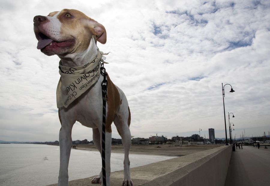 A dog stands beside the sea in Rimini, Italy, March 9, 2020.(Photo by Elisa Lingria/Xinhua)