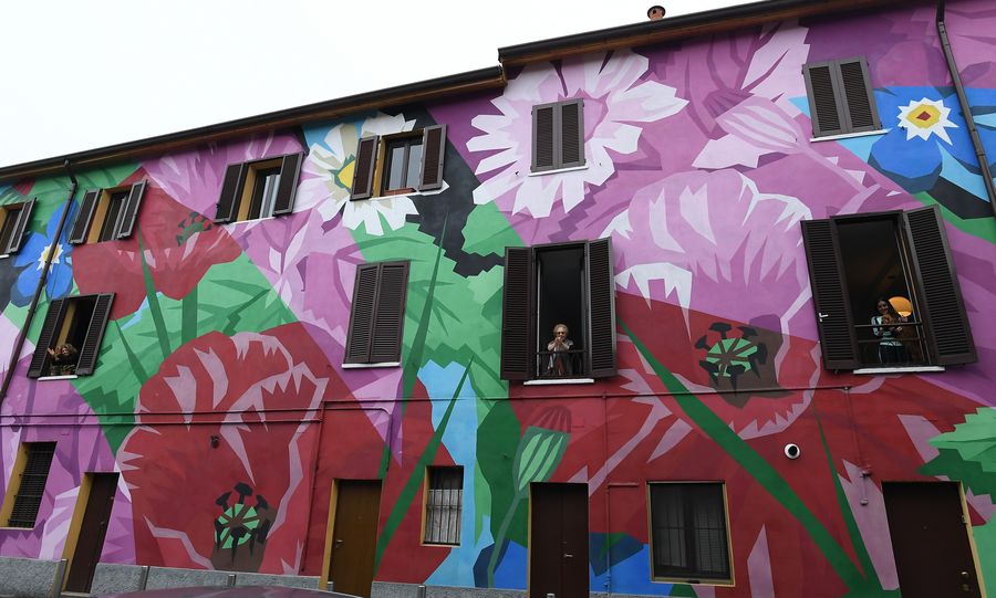 People participate in a flash mob to cheer up the city in Milan, Italy, on March 14, 2020.(Xinhua)