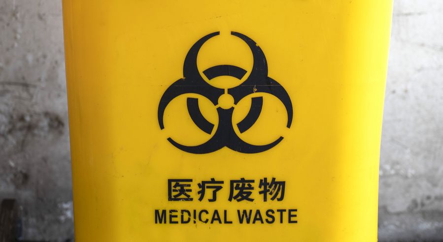A medical waste container at Wuhan on March 4, 2020. (Xinhua/Cai Yang)