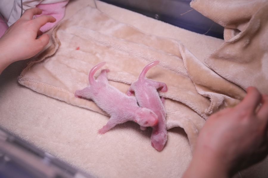 The world's first pair of captive-bred giant panda twins are born at the China Conservation and Research Center for the Giant Panda in Chengdu, southwest China's Sichuan Province, on March 17, 2020. (Xinhua/Xu Bingjie)