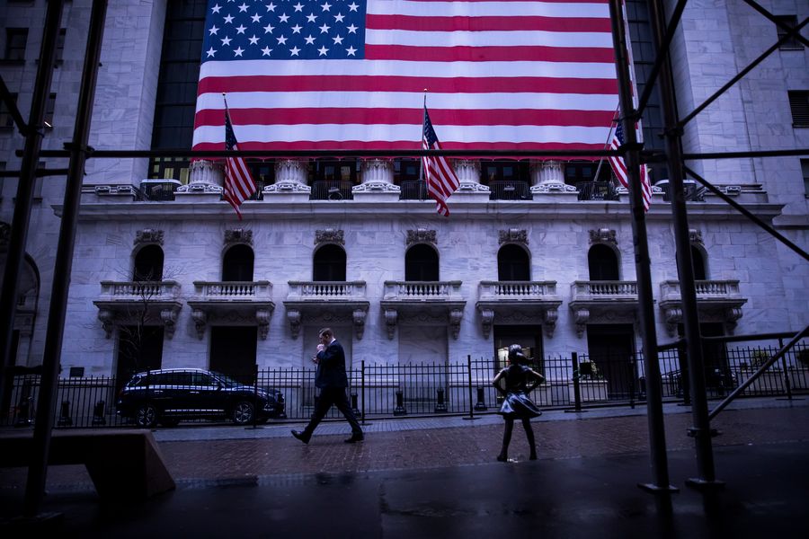 A pedestrian passes by the New York Stock Exchange (NYSE) in New York, the United States, March 17, 2020. (Photo by Michael Nagle/Xinhua)