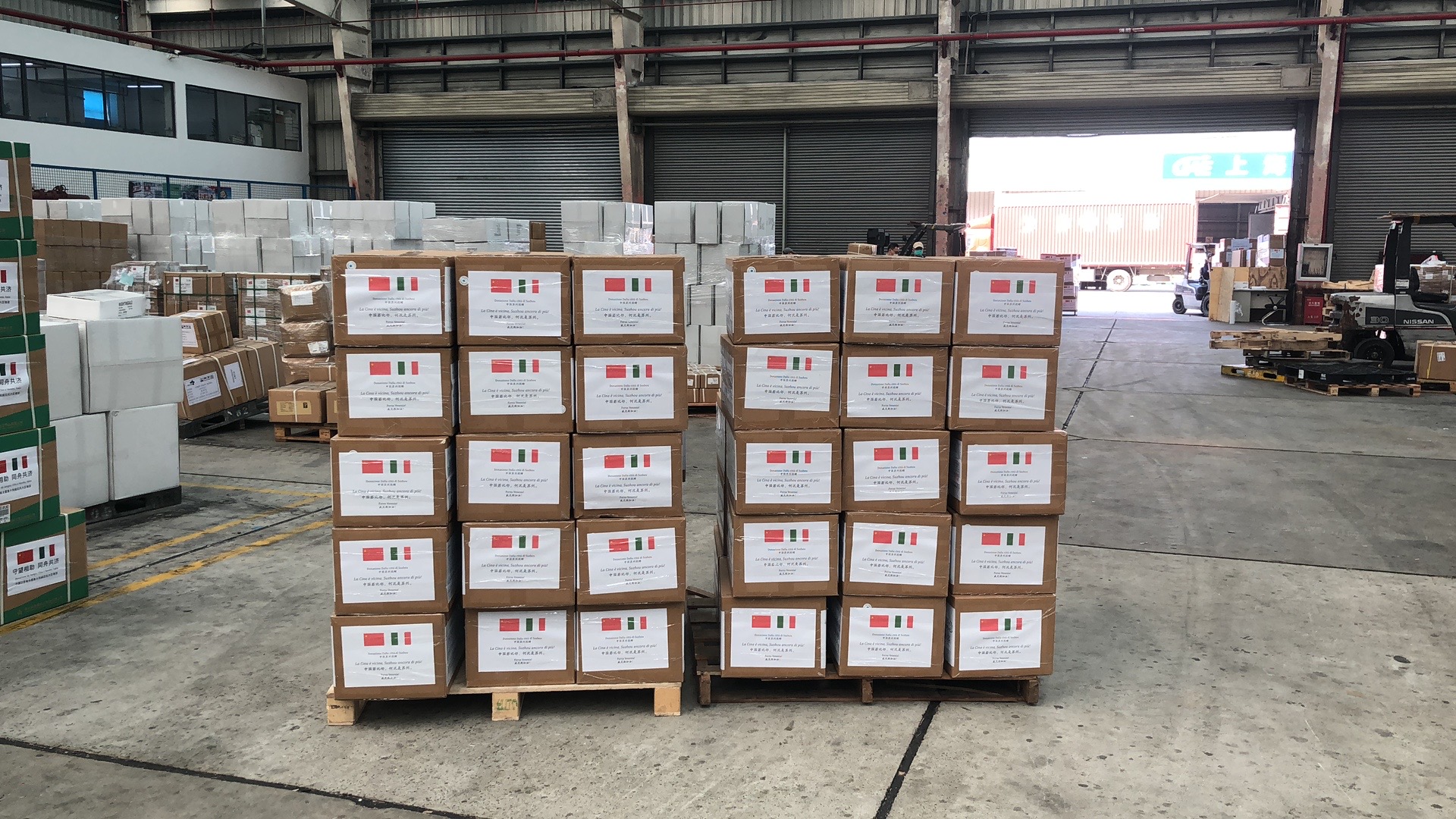 On Wednesday, 50 boxes of masks were sent to Italy via a temporary flight from Shanghai to Milan operated by China Eastern Airlines.
