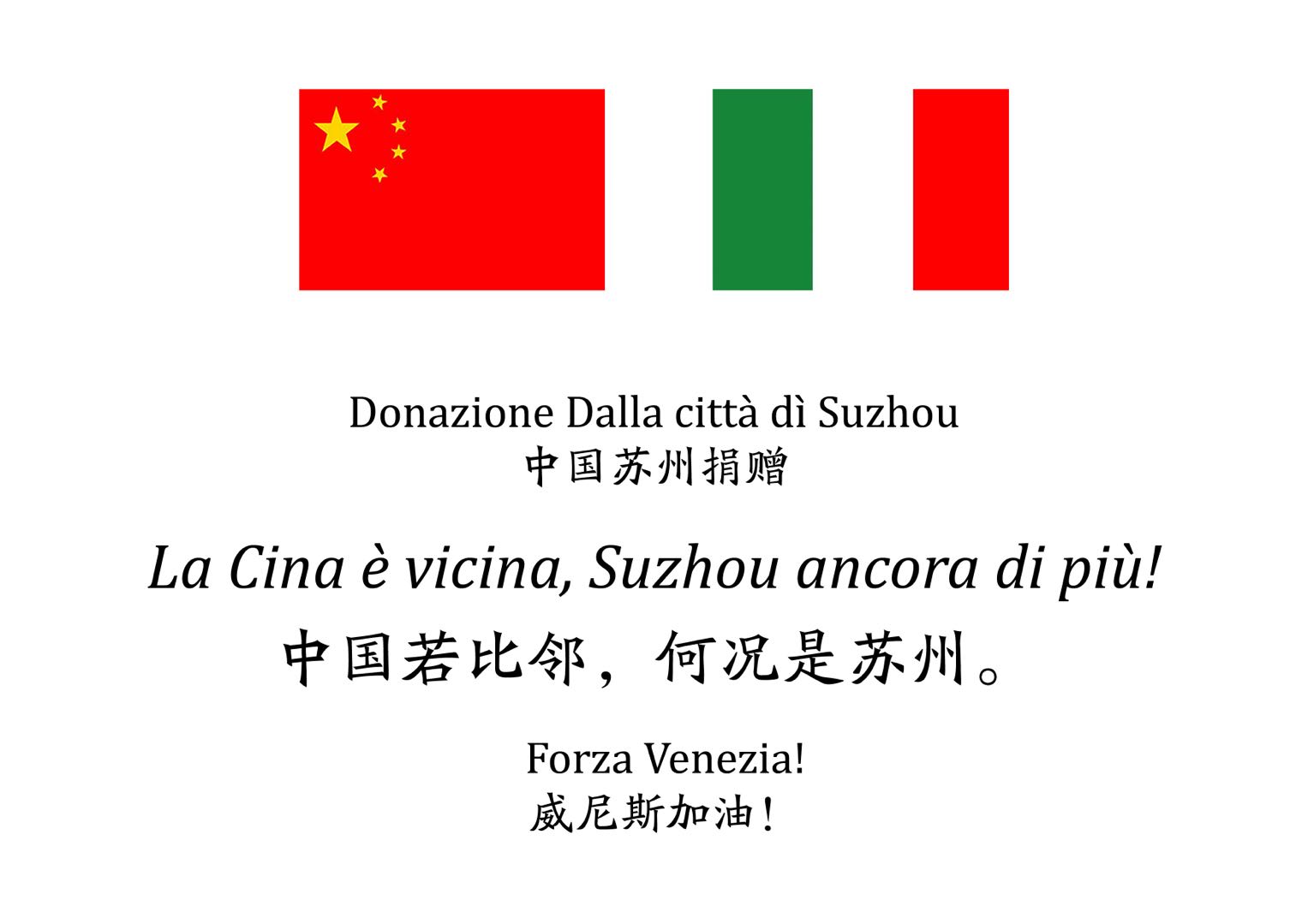 The masks were part of Suzhou's humanitarian aid to Venice amid the outbreak and showed its support to the people in the Italian city, according to the Suzhou municipal government.