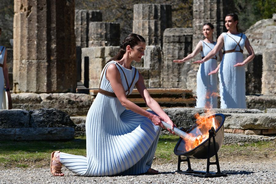 Due to the virus outbreak, the Greek leg of the torch relay was suspended a day after the Flame was lit at a ritual ceremony held on March 12 at ancient Olympia, the birthplace of the Olympic Games 25 centuries ago, in western Greece.