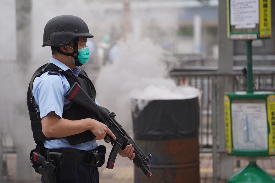 A counter-terrorism exercise is held in Hong Kong on March 20, 2020. (Xinhua/Lv Xiaowei)