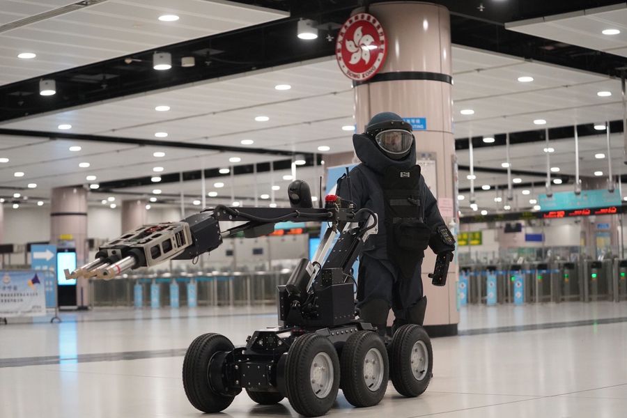The Hong Kong police said they aimed to highlight through this exercise how extreme violence posed serious threat to the public safety and to heighten public vigilance and awareness of suspicious objects.