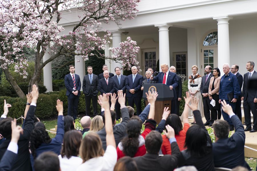 "I don't think so," Trump said when asked during a press briefing at the White House. "Essentially you've done that in California. You've done that in New York. Those are two hotbeds."