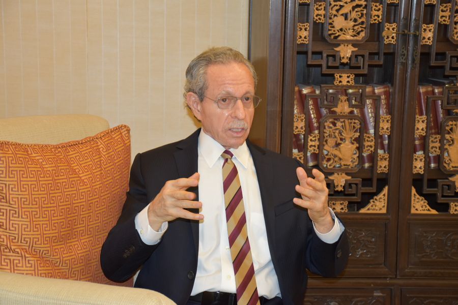 Robert Lawrence Kuhn, a U.S. expert on China, also chairman of the Kuhn Foundation, speaks in an interview with Xinhua in Los Angeles, the United States, Oct. 15, 2019. (Xinhua/Gao Shan)