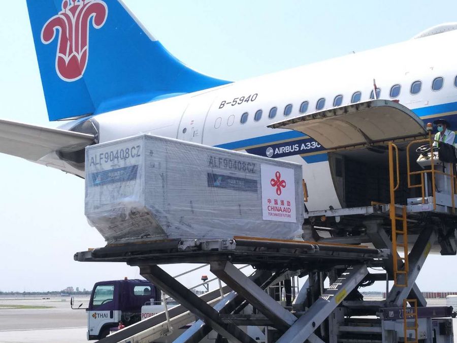 Medical supplies provided by China arrive at Suvarnabhumi Airport in Bangkok, Thailand, March 23, 2020, to assist the country's fight against the novel coronavirus. (Xinhua)