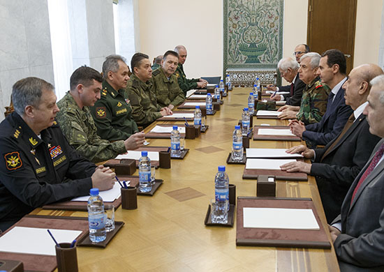 Russian Defense Minister Sergei Shoigu meets with Syrian President Bashar al-Assad in Damascus, Syria on March 23, 2020. (Russian Defense Ministry photo)