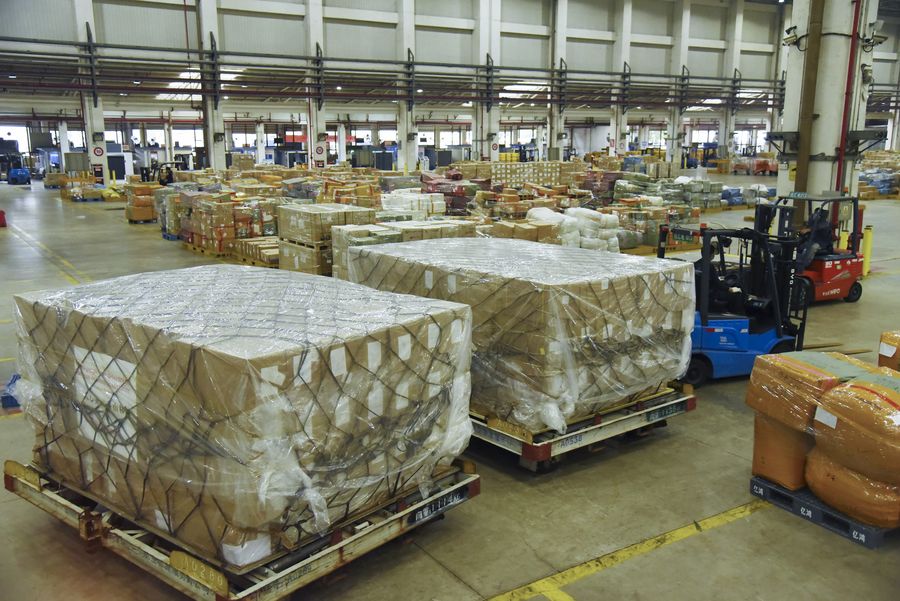 The photo shows packed medical supplies donated to African countries by the Jack Ma Foundation and Alibaba Foundation, which were packed and ready for shipping at Guangzhou Baiyun International Airport in Guangzhou, capital of south China's Guangdong Province, on March 21, 2020. (Xinhua/Tian Jianchuan)