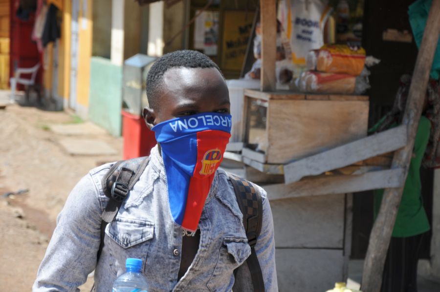 A man covers his nose with a piece of cloth in Kampala, capital of Uganda, March 23, 2020. (Xinhua/Joseph Kiggundu)