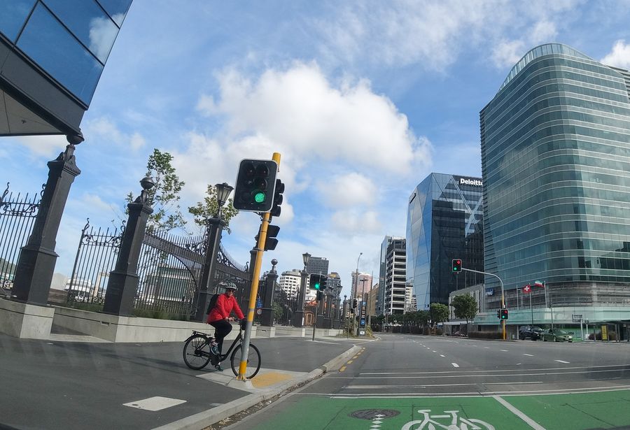 Photo taken on March 26, 2020 shows an empty street in Wellington, New Zealand. (Xinhua/Guo Lei)