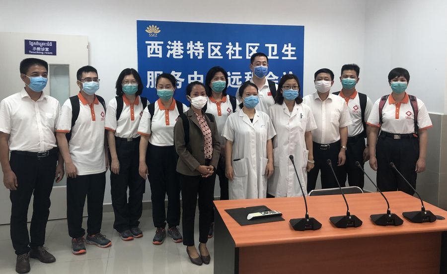 The Chinese medical experts visit the medical center of the Sihanoukville Special Economic Zone in Preah Sihanouk province, Cambodia, March 27, 2020. (Xinhua/Chen Duncai)