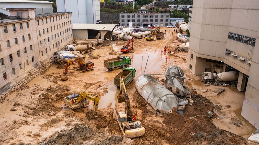 Photo taken with an UAV drone shows the accident site of a landslide in the city of Guiyang, southwest China's Guizhou Province, March 28, 2020. (Xinhua)