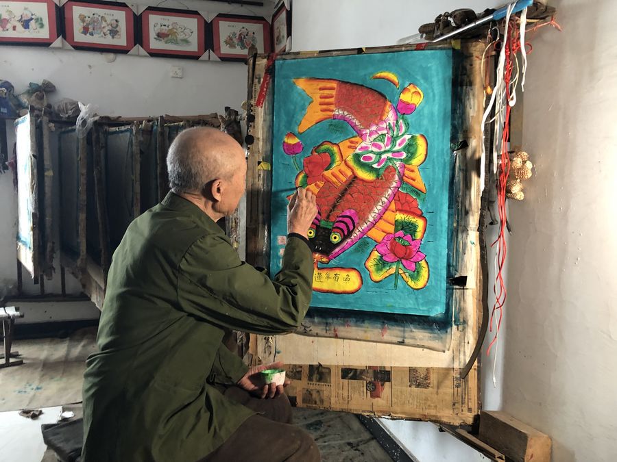 Wang, an inheritor of the Yangliuqing Woodblock Printing in north China's Tianjin Municipality, was one of the few artists dedicated to fish paintings which were traditionally hung on people's walls beside the water vats to express good wishes for the Chinese Lunar New Year.