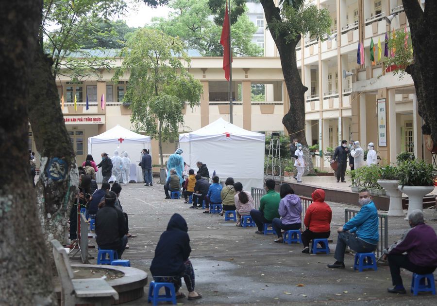 Photo taken on March 31, 2020 shows local residents waiting to take a rapid COVID-19 test at a makeshift testing station in Vietnamese capital city of Hanoi.(Xinhua/VNA)