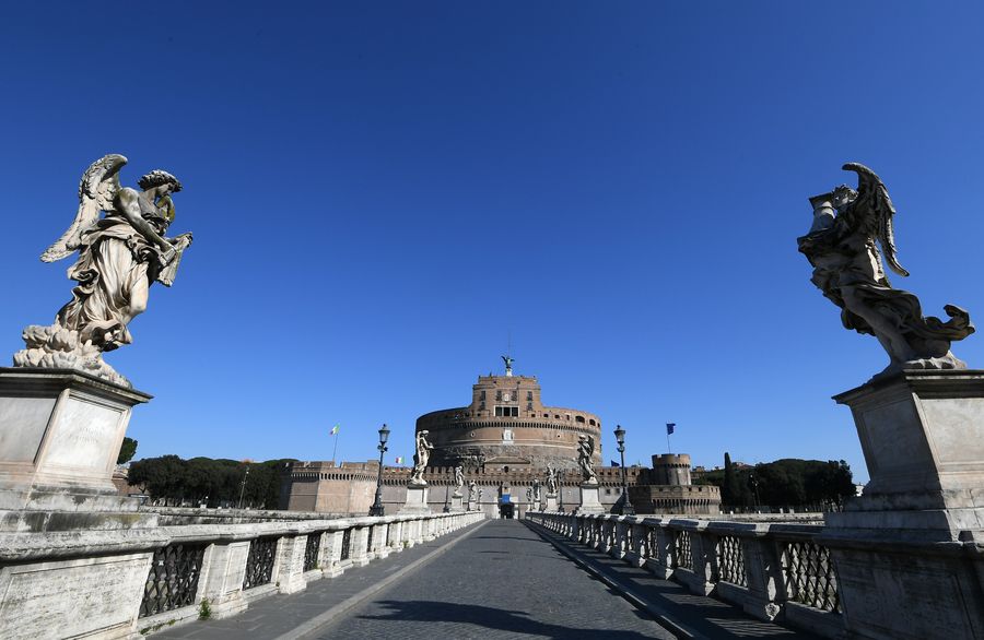 The empty Ponte Sant'Angelo is seen in Rome, Italy, April 1, 2020. (Photo by Alberto Lingria/Xinhua)
