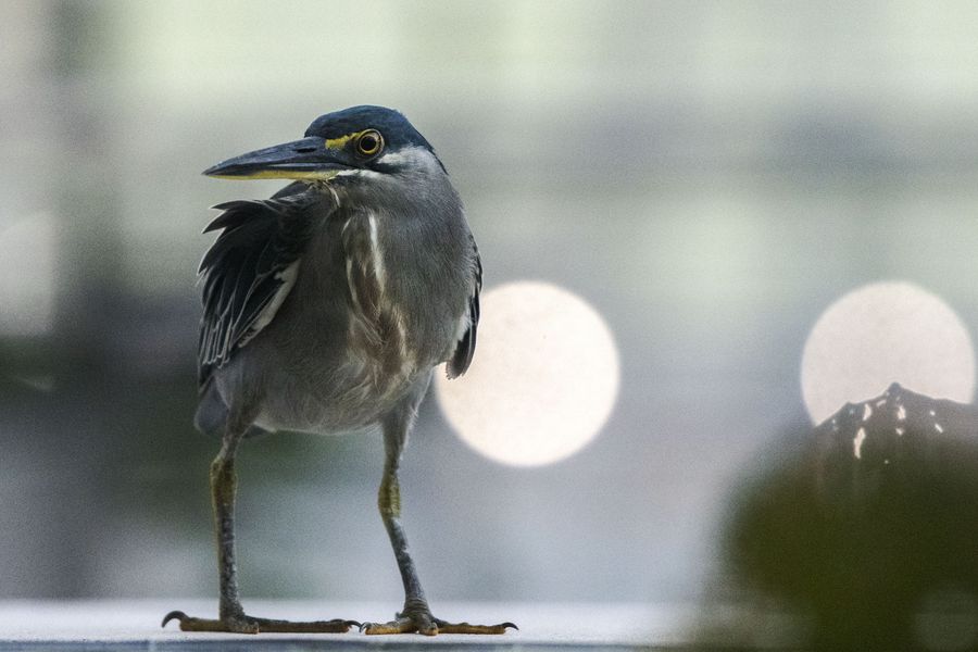 A striated heron (Butorides striata) hunts at a pond outside Singapore's ArtScience Museum on April 1, 2020. (Photo by Then Chih Wey/Xinhua)
