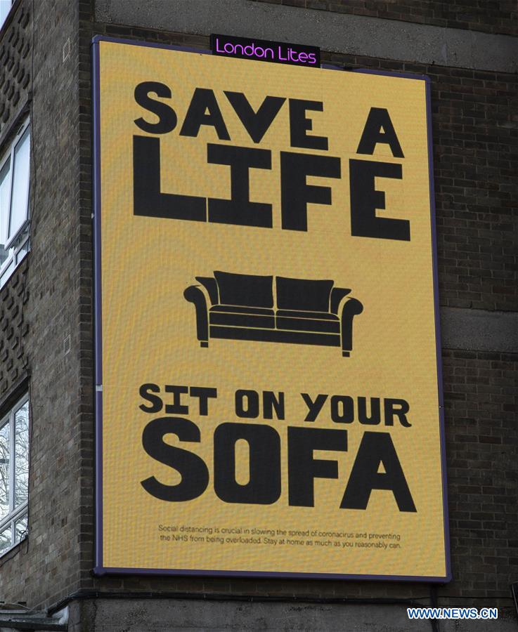 Photo taken on April 3, 2020 shows a notice of asking people to stay at home unless necessary in London, Britain. (Xinhua/Han Yan)