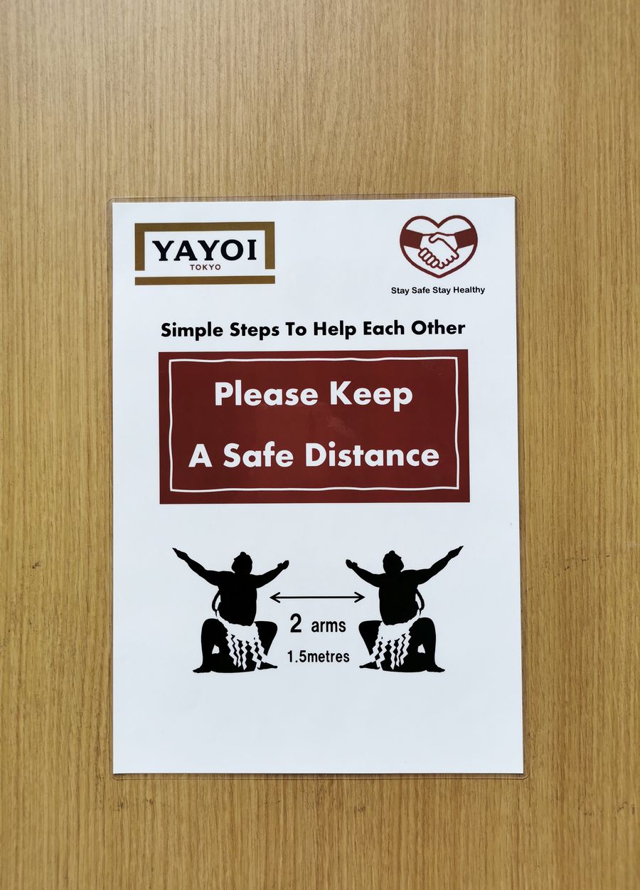 Photo taken on April 5, 2020 shows a notice on a door reminding people of social distancing at a restaurant in Sydney, Australia. (Xinhua/Bai Xuefei)