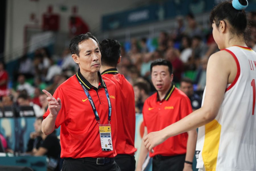 Xu Limin(L), head coach of team China gives command during a quarter-final qualification match between China and Japan at the 2018 FIBA Women's Basketball World Cup at Santiago Martin in San Cristobal de La Laguna in Tenerife, Spain, Sept. 26, 2018. China won 87-81. (Xinhua/Zheng Huansong)