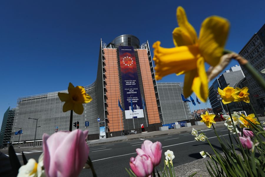 Flowers blossom at the European Quarter in Brussels, Belgium, April 6, 2020.(Xinhua/Zheng Huansong)