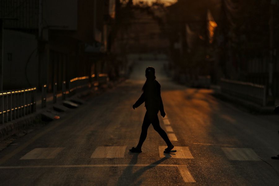 A woman walks on a street during the 11th day of lockdown imposed by the government amid COVID-19 outbreak in Kathmandu, Nepal, April 3, 2020. (Xinhua/Sulav Shrestha)