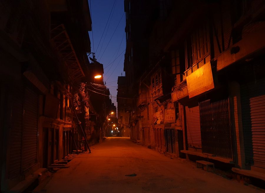 Photo taken on April 5,2020 shows an empty street during a lockdown imposed in Kathmandu, capital of Nepal. (Xinhua/Sunil Sharma) ■