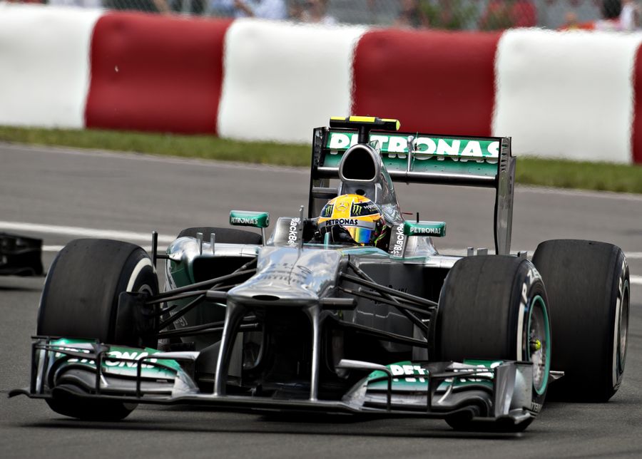 Mercedes Formula One driver Lewis Hamilton of Britain drives during the Canadian F1 Grand Prix in Montreal, Canada, June 9, 2013. (Xinhua/Andrew Soong)