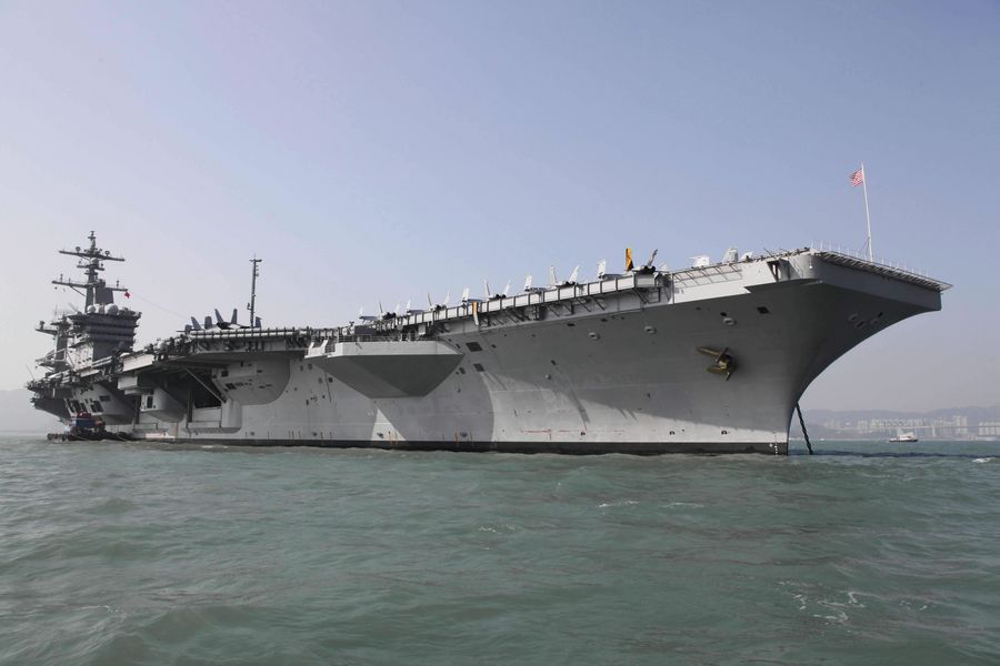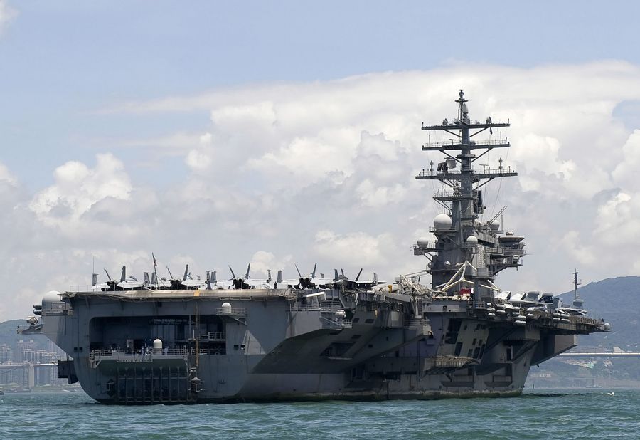 The USS Ronald Reagan Aircraft Carrier is seen in Hong Kong, Aug. 12, 2011. (Xinhua/Chen Duo)